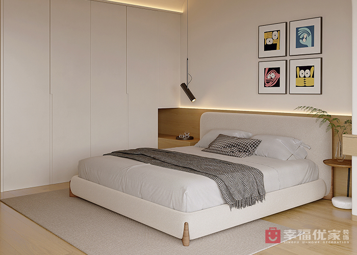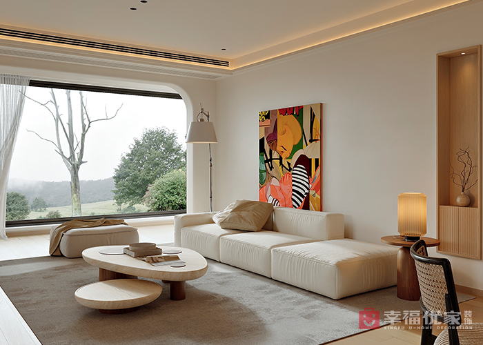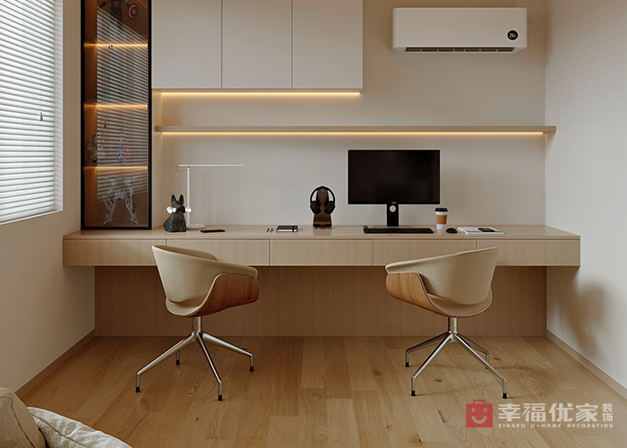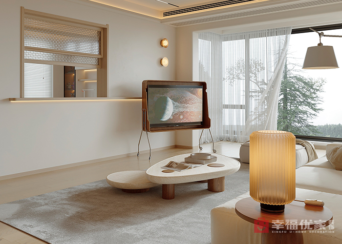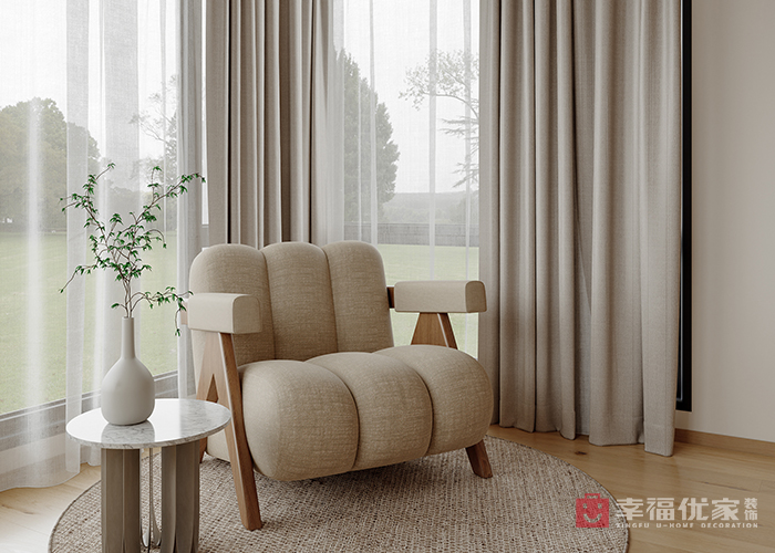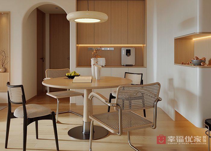 本案是一个117平 三室两厅的户型,一家三口的居住空间,保留两个卧室+书房的功能。做了书房半开放式,增加 空视野的开阔和空间的互动性。空间上多用弧形拱形的元素让空间线条感更加柔和。整体空间的色调以原木奶油为主 风格,增加空间的温馨感,取舍了电视墙,利用可移动式电视,让空间和生活有更多可变性。