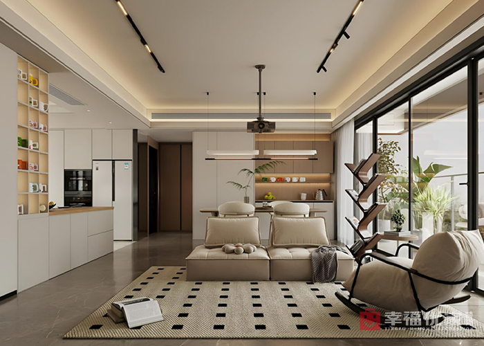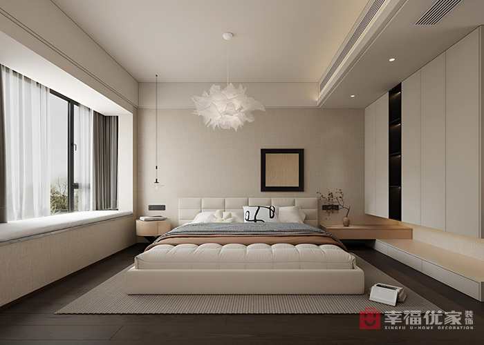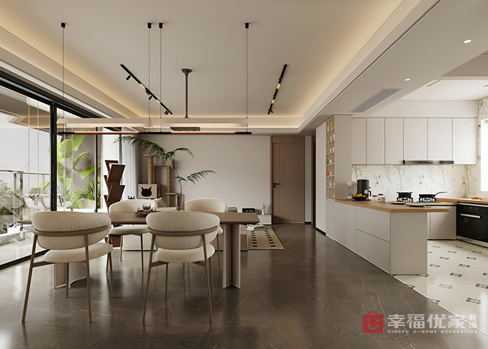原本是精装房,因套四改套三,原始厨房太小,就把卧室和厨房结合到一起,做成了开放式的中西厨结合。整体的色彩搭配以浅色为主题,木纹辅助的形式呈现出了现代风