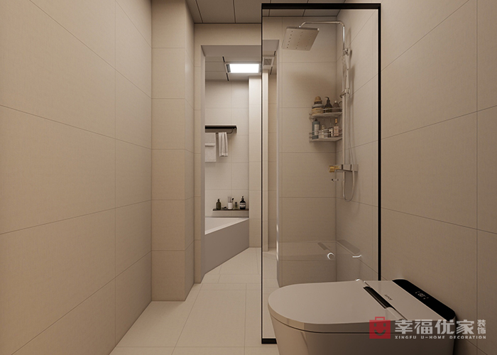 两人一狗,客户是一对新人夫妻,也是客户的婚房。房屋的改动主要体现在厨房,卫生间。把原本的封闭式厨房做成了入户开放式;卫生间也做成了干湿双分离加单独的浴缸区,把生活阳台纳入到卫生间,增加卫生间的面积放下浴缸,还有独立的宠物厕所,因为有烘干机的存在,就可以取消生活阳台。