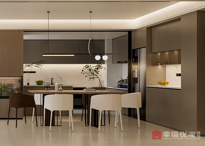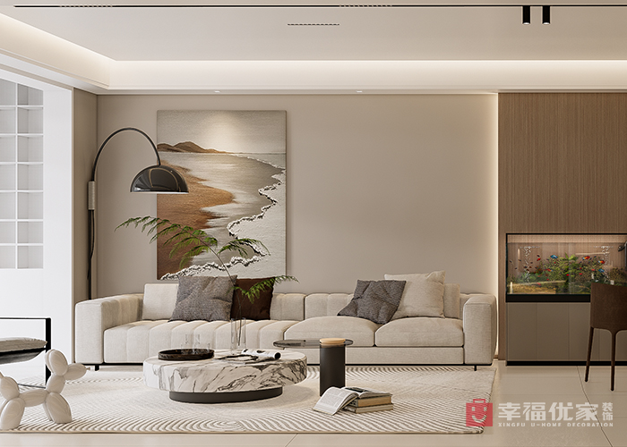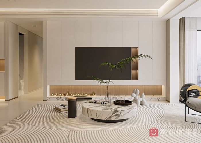 客户以暖色地砖,无主灯暖色光源,卧室使用榆木色地板,灵动的调色使房间更有张力,更加烘托家的温馨感。