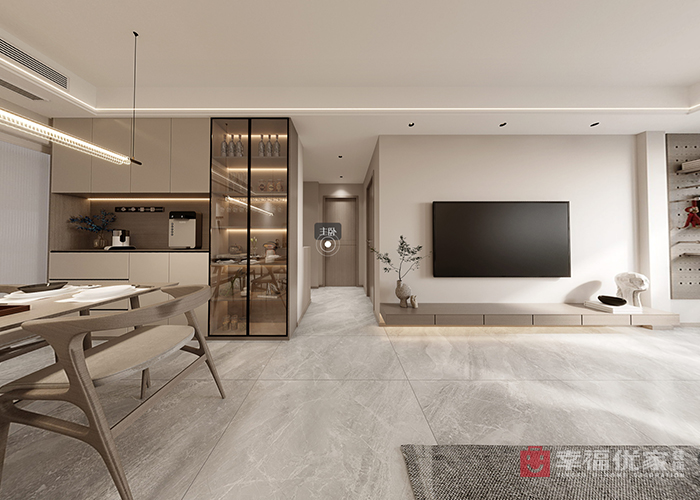 主色调以质感比较好的咖色调来做,低调的颜色不会让人产生视觉疲劳,业主叔叔中央空调、地暖、新风都考虑了,说“上了年纪就该享受生活了”,所以一定要装的简单、大气、好打理。