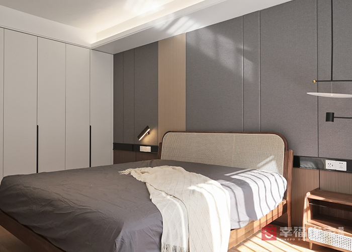 宋代美学的极简——至简的屏风造型,完美的融合到现代风格里;主卧背景墙如同墨色晕染,仿佛都能闻到一股墨香~